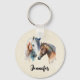 Personalised keychain with a beautiful watercolor drawing. Featuring a pair of horses, brown and white. Head and neck visible with dripping paint along the base of their neck. Southwestern vibe.