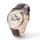 A watch with a beautiful watercolor drawing. Featuring a pair of horses, brown and white. Head and neck visible with dripping paint along the base of their neck. Southwestern vibe.
