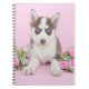 Beautiful Husky Puppy with Pink Roses Notebook