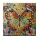 Beautiful Impasto Butterfly and Flowers Tile