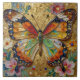 Beautiful Impasto Butterfly and Flowers Tile
