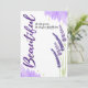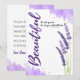Let someone know how you feel about them with this elegant design featuring large vertical headline, "Beautiful", followed by this message: "It's who you are. It's who you've always been." Word "always" has hand drawn-style underline. Background includes lavender spray illustration, digitally rendered gold ink dots (effect) and purple watercolor stain on bottom left and top right border. Inside has this placeholder text. "Do you even realise how wonderfully beautiful you are? Your beauty, inside and out, is a priceless gift to this world and to me. I'm thankful for you."