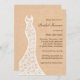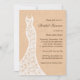 A romantic lace wedding dress accents this bridal shower invitation on an illustrated burlap background. It is shown on the basic paper; however, I recommend the weight and texture of the linen paper.