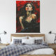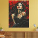This artwork is a celebration of beauty, grace, and timeless elegance. The closed eyes suggest a moment of introspection or quiet contemplation, inviting viewers to appreciate the lady's inner radiance. The combination of elements - the lady's features, the red background, and the flowing black hair - coalesce into a visual symphony, making this canvas a striking addition to any space.
