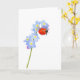 Beautiful ladybug on forget-me-not flower drawing greeting card. Perfect for all occasions. Blank on the inside for your personal message.