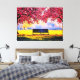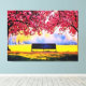 Beautiful landscape with cherry trees and a bench Canvas Print.