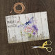 Beautiful, lavender purple dragonfly on rustic, weathered white wood, with pink and purple florals. A "Fresh Flower Market" sign to the left of dragonfly. Perfect for decoupage craft supplies or gift wrap supplies.