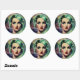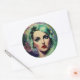 Beautiful Lavender & Green Retro Style Space Woman Classic Round Sticker