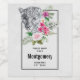 Personalised wine making bottle labels with a beautiful illustration featuring a grey, black and white leopard portrait. This lovely animal is surrounded by a tropical flower bouquet. Elegant, exotic and lovely.