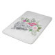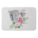 A bath mat with a beautiful illustration featuring a grey, black and white leopard portrait. This lovely animal is surrounded by a tropical flower bouquet. Elegant, exotic and lovely.