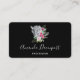 Business cards with a beautiful illustration featuring a grey, black and white leopard portrait. This lovely animal is surrounded by a tropical flower bouquet. Elegant, exotic and lovely.