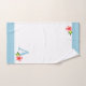 Beautiful light blue monogram with pink flower Bath Towel Set. Monogram can be personalised.