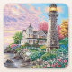 Beautiful Lighthouse Cottage Square Paper Coaster
