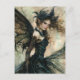 Beautiful Fairy wearing a dark green and black dress, she has gorgeous lacy black lace wings, long flowing hair, pointed ears and dark green feathers in her hair.