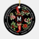 BEAUTIFUL PERSONALIZED CHRISTMAS ORNAMENT FEATURING TRADITIONAL HOLIDAY ICONS - CHRISTMAS STOCKING, CANDY CANE, HOLLY SPRIGS AND MORE. INITIAL GOES ON THE FRONT, NAME AND DATE ON THE BACK.