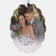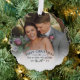 Photo ornament celebrating your first Christmas as Mr & Mrs personalised with photo, last name, and the year with a pretty mistletoe branch. First Christmas photo ornament personalised with wedding photos. First Christmas as married photo ornament with a pretty mistletoe twig.