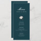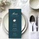 Welcome to our Beautiful Modern Cotton Green Elegant Menu Wedding enclosure card, a delightful addition to your wedding celebration as bride and groom. With its teal green background and crisp white text, this menu card exudes elegance and sophistication, making it the perfect choice for your special day.