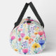 I actually had been searching other sites for a duffle gym bag and I couldn't find any. This one is just what I was looking for with all the features. The inside zip pocket, the outside mesh pocket and LOTS of room inside. Love the printing. Really like how the floral print turned out.