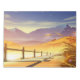 A lakeside walkway with beautiful mountain scenery in the background in anime style