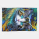 Beautiful Mystical Cat in Blues and Golds Tea Towel