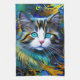 Beautiful Mystical Tabby cat in Gold and blue abstract swirls