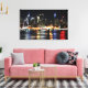 Gorgeous canvas print featuring a colourful photo of the New York skyline at night with its lit up buildings being reflected in the dark river.