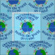OT makes the world go round fabric. A cute occupational therapy gift for your favourite occupational therapist. Features a group of people holding hands around the blue and green planet Earth. Come together to make a change by helping people through sensory play.