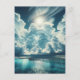 Keep in touch and say hi with this gorgeous ocean view postcard. Beautiful ai art showing the sun shining through the fluffy clouds above a gorgeous ocean view with an ocean dock.