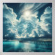 Beautiful Ocean, Dock and Fluffy Clouds Poster