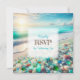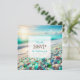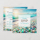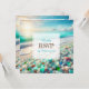 Beautiful wedding RSVP cards with a beautiful calm serene white beach with pretty teal and blue ocean waves and sea glass.