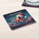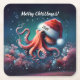 Beautiful Octopus in Santa Hat Square Paper Coaster