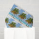 Tissue paper with a beautiful and tranquil photograph of 2 palm trees under a bright blue sky.