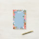 Floral post-it notes with pastel flowers in orange, pink, and white. Add your name at the top in a white calligraphy script against a light blue background.