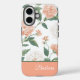 Beautiful Peach Floral Personalized Name Case-Mate iPhone Case