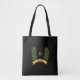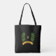 Beautiful modern green bay leaves and golden ribbon on black Tote Bag. Text can be personalised.