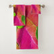 Beautiful Pink and Green Leafy Pattern Bath Towel Set