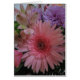 This item features a photograph of beautiful pink and purple flowers. This arrangement has flowers with several shades of pink and purple and a touch of green.