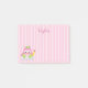 These post it notes are absolutely beautiful. Displaying a pink and white vertical design with a pink owl in the bottom left hand corner, use the template to customise your name. Purchase your post it notes today!