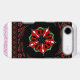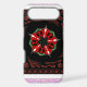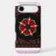 Red and Green: These vibrant colours are used in the central floral design, creating a striking contrast against the dark background.