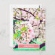 Travel photography Japanese travel print with image of pink Sakura cherry blossom flower trees in Spring in a pink and green photography design.Traditional Japan. Beautiful Japanese flower scenery.