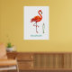 Beautiful Pink Flamingo Bird & Reed Plant on White Poster