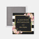 Beautiful Pink Floral Black White Striped Magnet.