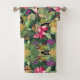 Beautiful Pink Flower and Tropical Leaf Pattern Th Bath Towel Set
