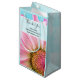 Thank you gift bag with a vibrant pink and white flower. Close up photograph of this enchanting flower really grabs your attention. A pastel blue strip with your personalised text inside. The sides of the bag have a light blue watercolor image.