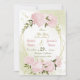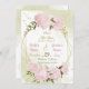 beautiful romantic save the date invitation featuring pretty pink flowers with some green leaves on gold geometric frame . The gold glitter details are simulated . For more customisation (change the font or its colour or change the layout ) click on personalise scroll down then click on (Click to customise further) . FOR MORE MATCHING PRODUCT click on the collection above