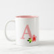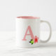 Beautiful pink monogram with flower on white Two-Tone coffee mug