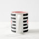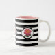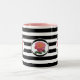 Beautiful Pink Rose on Black & White Striped Two-Tone Coffee Mug