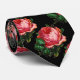 Elegant ,colorful vintage floral design,red pink cabbage roses with green leaves on black background.