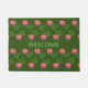 Beautiful pink roses on forest green door mat. Welcome text can be personalised.