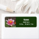 These address labels feature a dark green background along with white lettering for your personal information. A beautiful pink water lily photo accompanies your name and address. The photograph features a pink lily with a burst of vivid yellow colour in the centre. The entire flower is surrounded by dark green lily pads.